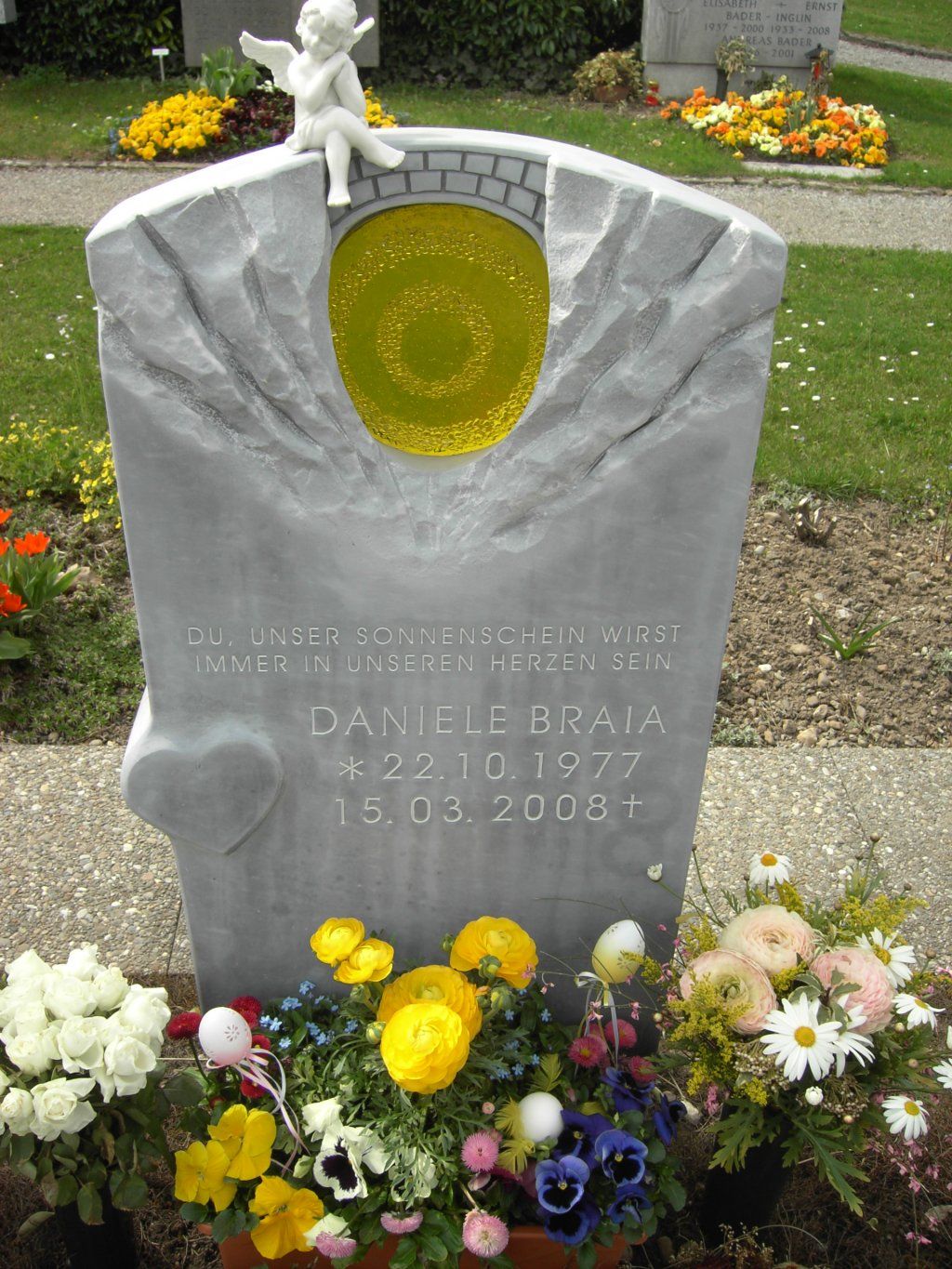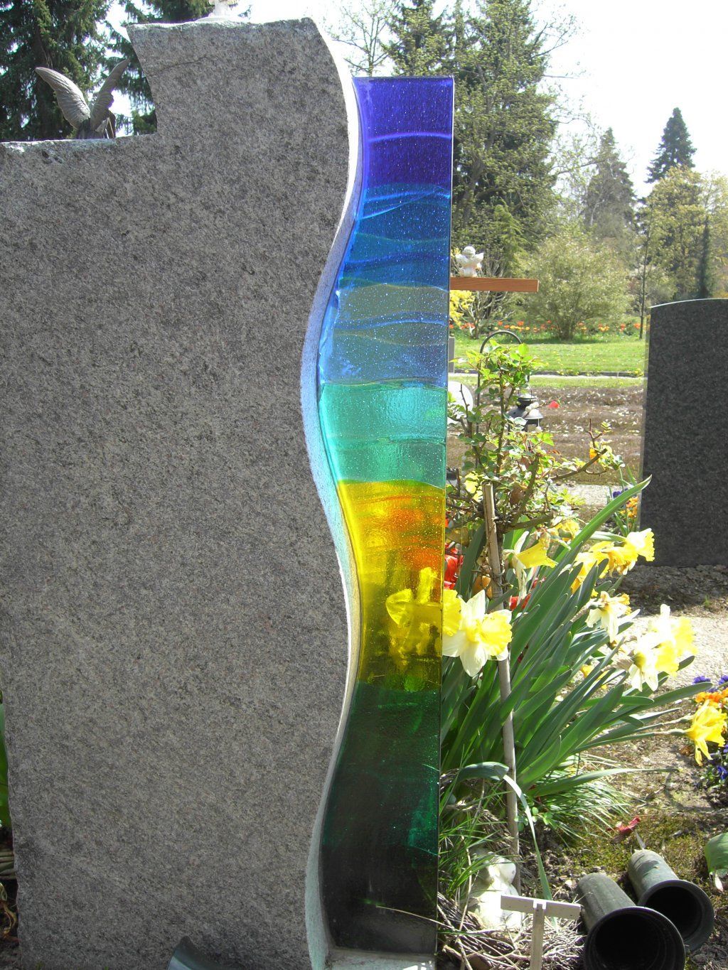 Impressionen: Grabschmuck (Grabsteine) in handwerklicher Kombination von Glas+Stein.